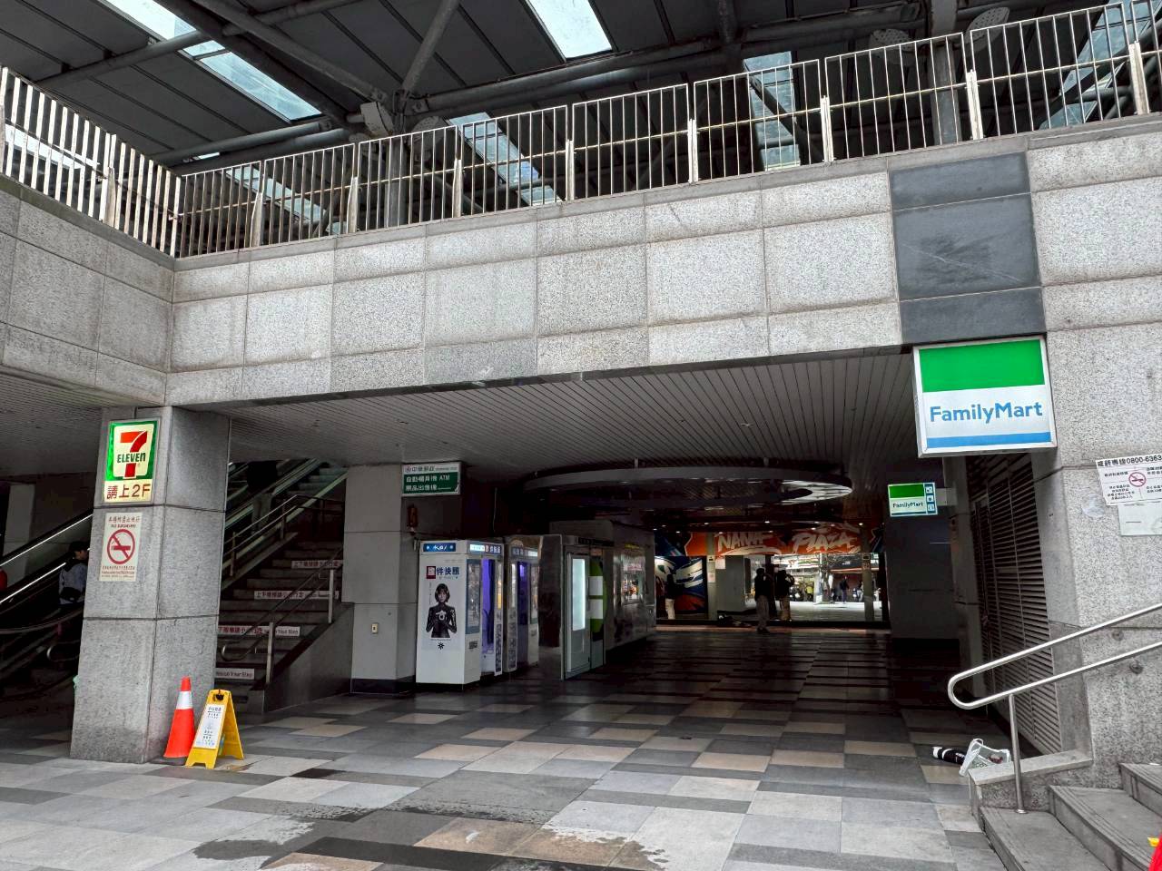 往二樓車站大廳電扶梯旁,全家對面