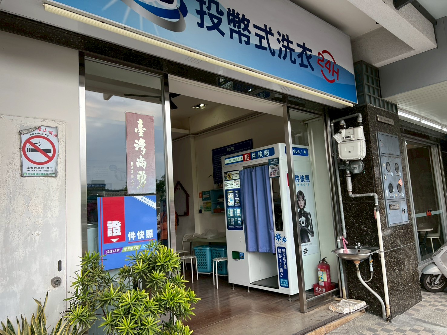 對面洗衣店內